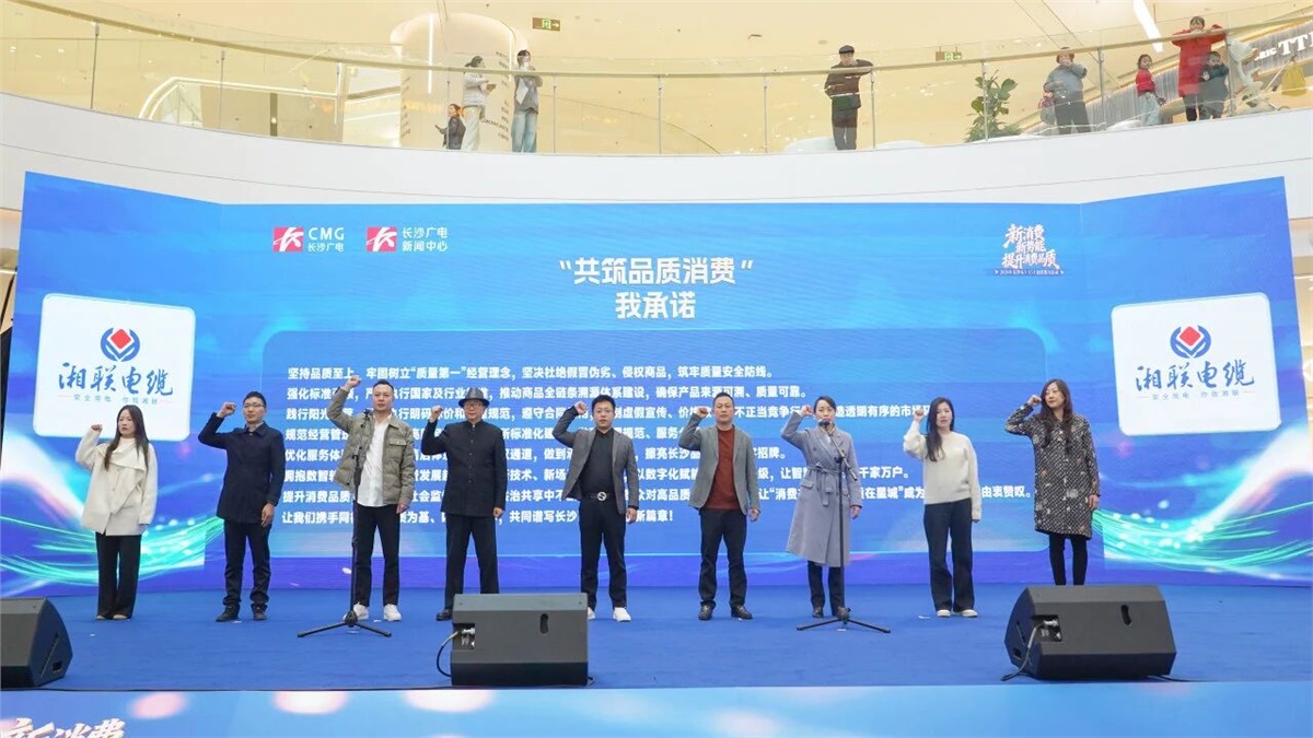 在活動啟動儀式上,湘聯(lián)電纜與其他重點企業(yè)代表共同登臺,鄭重宣讀了 《共筑品質消費》承諾宣言。一句句鏗鏘有力的誓言,不僅是對廣大消費者的莊嚴承諾,更是企業(yè)堅守“誠信經營、品質為先”的初心寫照。湘聯(lián)電纜以實際行動表明,將始終把產品質量和消費者權益放在首位,為構建健康、有序、可持續(xù)的消費市場環(huán)境不懈努力。