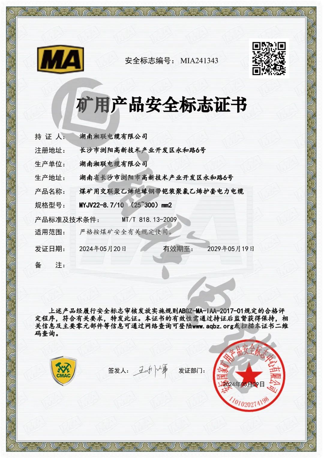 此次獲批礦用產(chǎn)品安全標志證書是對湘聯(lián)電纜產(chǎn)品品質和企業(yè)綜合實力的最佳認證之一。自成立以來,湘聯(lián)電纜始終堅持嚴把產(chǎn)品質量關,持續(xù)優(yōu)化科技創(chuàng)新體系,公司產(chǎn)品已廣泛應用于電力、石化、建筑、交通等多個行業(yè),企業(yè)先后通過國家強制性產(chǎn)品認證、“三位一體”管理體系認證、武器裝備質量管理體系認證等國家和行業(yè)的專業(yè)認可,獲得用戶廣泛贊譽。未來,湘聯(lián)電纜將繼續(xù)加強科技創(chuàng)新力度,不斷提升產(chǎn)品核心競爭力,持續(xù)以安全優(yōu)質的產(chǎn)品服務市場,為公司高質量發(fā)展注入新動能。